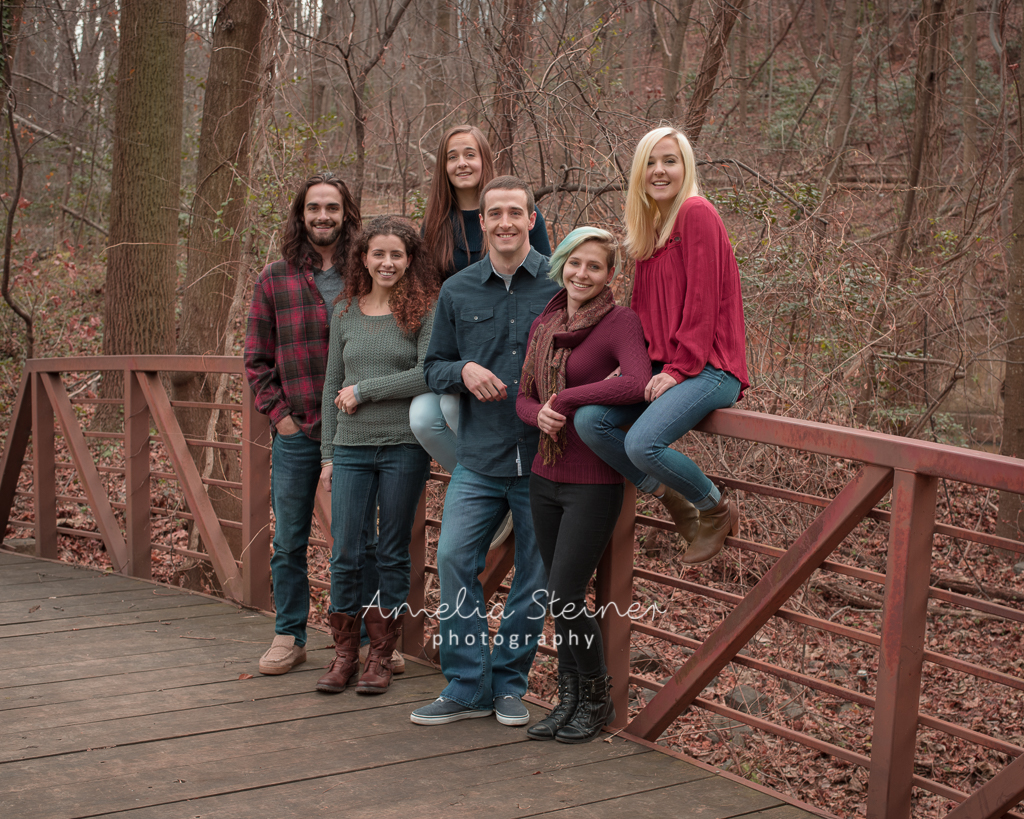 Love this bridge for these winter photographs. It’s just enough off the beaten path, making it a perfect location for this family when they were all together recently. These guys totally know how to make the most of their time together. Underneath the joking and jesting, it looks like there’s a lot of fun, love, respect, support and tolerance for each other. The best kind of family.